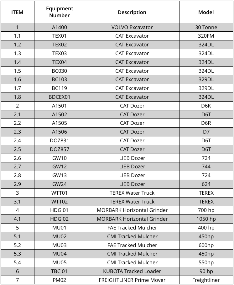 Tobiah Tree Mulching Services have a full range of plant equipment for hire, for land clearing and grubbing purposes.
